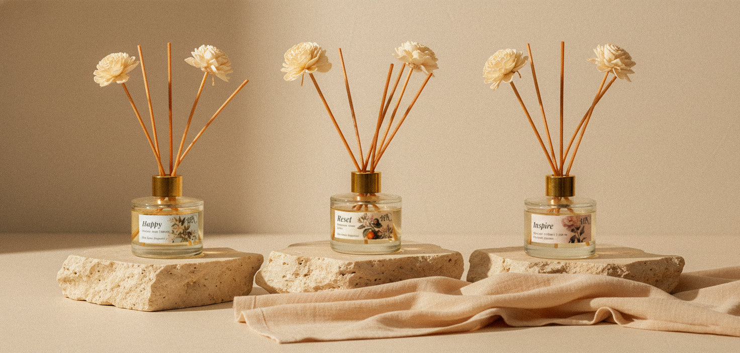 Designed to work quietly in the background, our reed diffusers provide effortless, always-on home fragrance for everyday living.